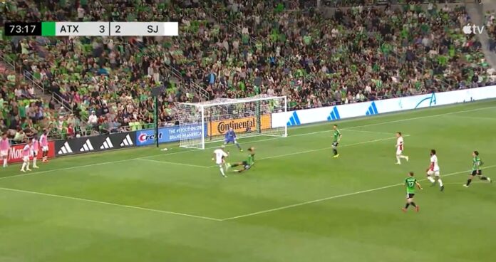 Natt til søndag i møtet med Austin FC fikk han ballen på sin venstreside foran mål og satte ballen iskaldt til høyre for keeper i det lengste hjørnet.