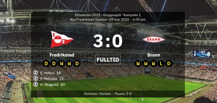 Fredrikstad Fotballklubb leverte en imponerende prestasjon i årets Eliteserie-premiere med en klar 3-0-seier over Brann på Nye Fredrikstad Stadion. Kampen på Fredrikstad Stadion ble en triumf for hjemmelaget og en skuffelse for de bergenske gjestene.