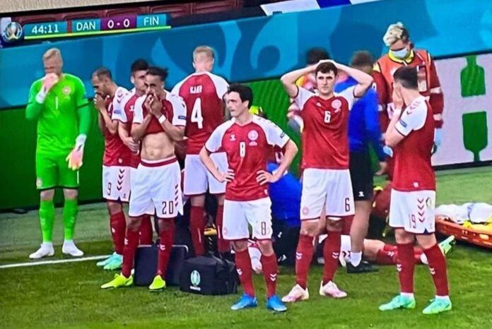 Den danske playmakeren Cristian Eriksen segnet om og medisinsk personell hastet ut på banen og startet med umiddelbar hjertekompresjon. – Det var rett før pause i EM kampen mellom Danmark og Finland han segnet om. Spillere både finske og danske skjønte raskt det var alvorlig. Man kunne se flere spillere gråte åpenlyst.