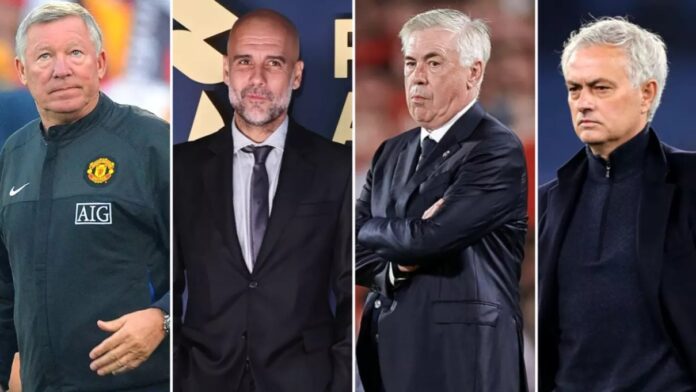 Det er lett å plassere managere som Manchester United-legende Sir Alex Ferguson og nåværende Manchester City-sjef Pep Guardiola høyt på lista sammen med Real Madrid manager Carlo Ancelotti.