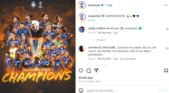 Atalanta er ikke bortskjemte med å innkassere trofeer. På klubbhuset er det kun et cupgull fra 1963 som førstelaget stolt kan vise frem. Nå suppleres den med hittil deres største seier i Bergamo-klubbens 116 år lange eksistens.