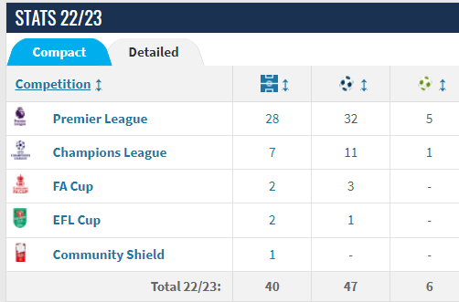 Før denne sesongen sto rekorden til Mo Salah med 32 mål i 2017/18-sesongen som helt ekstrem, etter tjuefem minutter mot Leicester hadde Haaland hamret inn to scoringer og tatt igjen Liverpool-stjerne. Guardiola nektet Haaland nok et hattrick ved å ta 22-åringen ut etter første omgang.