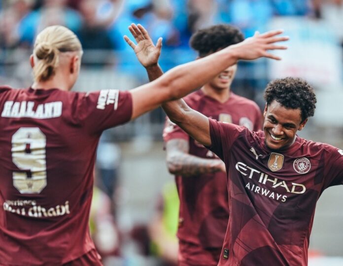Julian Alvarez, Kevin de Bruyne, Jeremie Doku, Bernardo Silva, Phil Foden og Savinho har ennå ikke startet pre-season med hovedtroppen, så Grealish, Haaland og Bobb kan være trioen som starter på Wembley Stadium mot Manchester United neste helg.