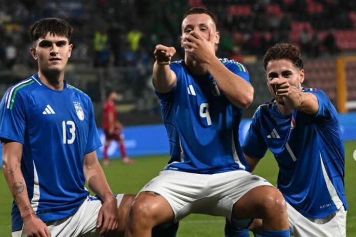 En gutt som la til to flere mål på sin konto i sin andre kamp for Italias U21-lag mot Armenia på tirsdag.