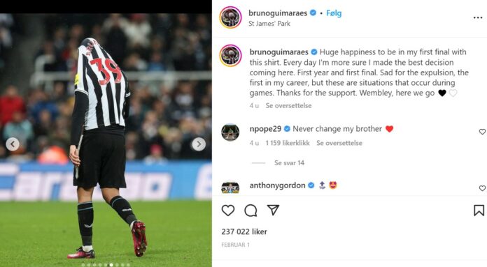 For noen uker siden måtte den brasilianske defensive midtbanespilleren Bruno Guimaraes ut å forklare at han faktisk er glad i den hvite og sort stripede trakta til Newcastle. – En kommentar i sosiale medier var «hodeløst» og en annen kan noen «klippe hull til øynene.. «