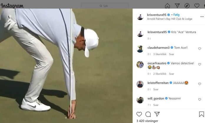 Den norske golferen Kristoffer Ventura hadde før det 14. hullet en helt vanlig dag på jobb. Men så kom en Hole-in-One som fullstendig snudde stemningen.