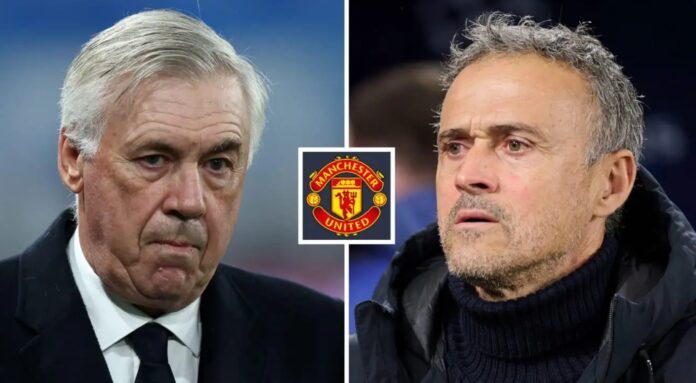 Landslagssjef for Brasil Carlo Ancelotti og Paris Saint-Germain manager Luis Enrique har begge blitt koblet til Manchester United-jobben.