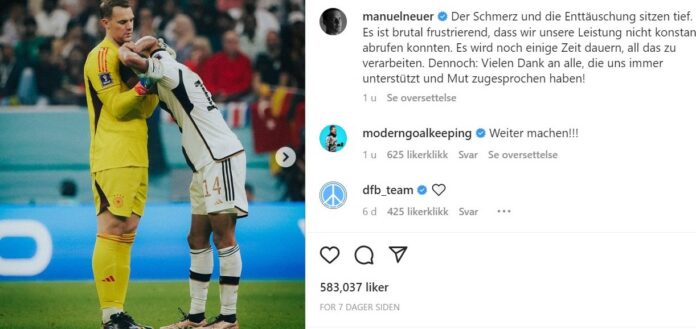 Vel gjort er gjort. Manuel Neuer er ute resten av sesongen noe han beklager overfor sine 12,1 millioner følgere på Instagram.