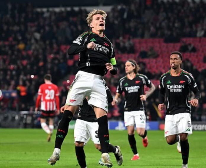 Martin Ødegaard har blitt anklaget for å ha gjemt seg midt i Arsenals ødeleggende skadekrise, og skipperen hadde gått fire kamper uten mål eller assist da hjulene falt fra Gunners’ Premier League-tittel. Men Ødegaard beviste sin verdi onsdag da han demonterte en riktignok ussel PSV-bakvakt.