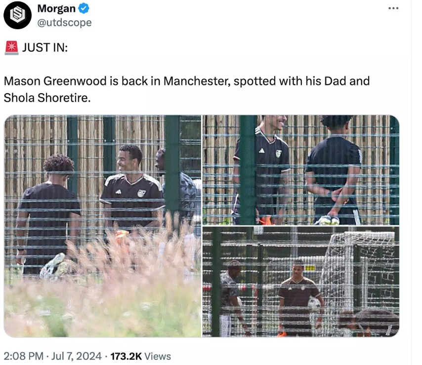 Men mens Greenwood er i Manchester, forventes det ikke at 22-åringen kommer tilbake til trening hos arbeidsgiverne sine. Førstelaget returnerer til kamp 8. juli, mange melder seg på for sesongen senere på grunn av å få fri etter både EM 2024 og Copa America.