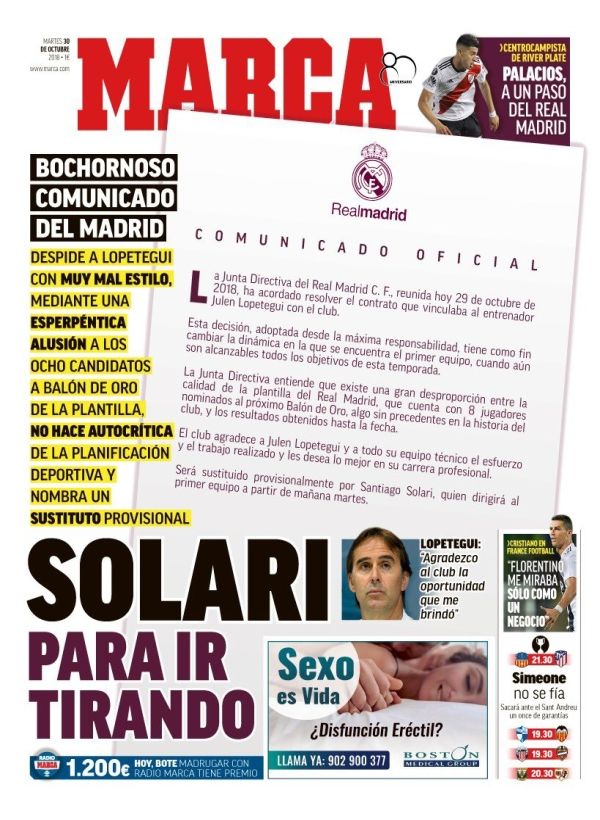 Fotball Marca kommer med massiv kritikk av hvordan Real Madrid håndterte sparkingen av Lopetegui, det var ikke nok å gi han sparken, man måtte ydmykes i tillegg. I pressemeldingen skrev de: