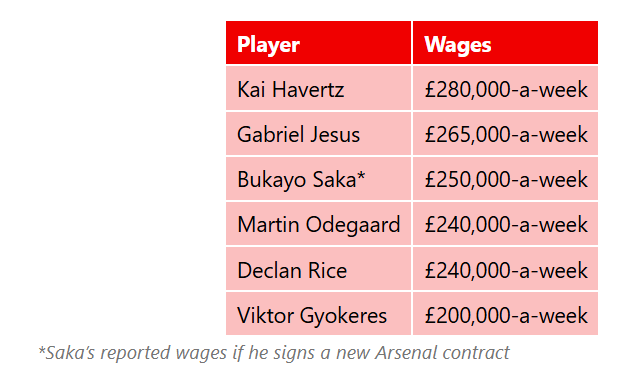 Dette vil ikke gjøre Saka til klubbens best betalte, med to spillere over seg i lønnshierarkiet. Vi tipper når forhandlingene er i gang for alvor i løpet av de kommende ukene, blir dette et sentralt tema.
