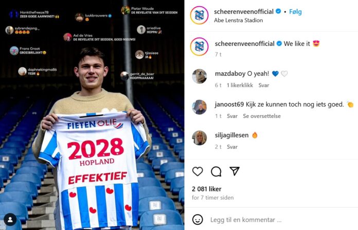 Nikolai Hopland (20) gjør oppholdet i Heerenveen permanent etter å ha vært lånt ut til den nederlandske klubben siden september.