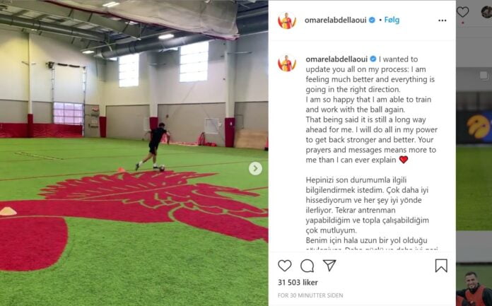 På Instagram har Omar Elabdellaoui lagt ut en video av han som trener med ball og han skriver: «Føler meg mye bedre, men det er fortsatt lang vei å gå».
