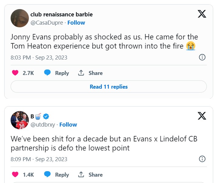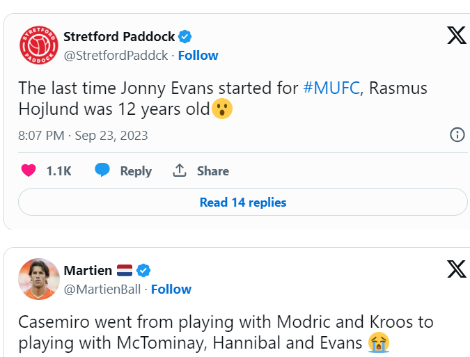 Fotballtransfers har samlet et knippe med kommentarer på twitter, for noen var 35-åringen Jonny Evans i midtforsvaret til en av verdens største klubber et skikkelig bunnpunkt.