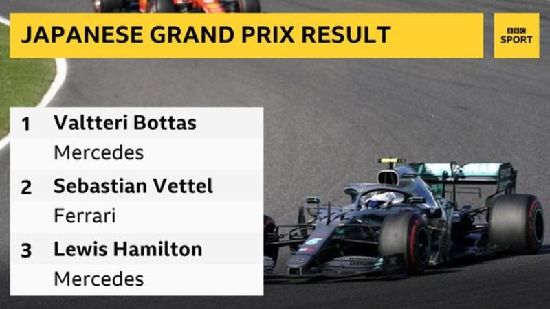 Valtteri Bottas vant det japanske Grand Prix løpet med Lewis Hamilton som tredje bak Ferraris Sebastian Vettel og sikret med det en ny Formel 1-rekord for med et sjette verdensmesterskap dobbel for Mercedes.