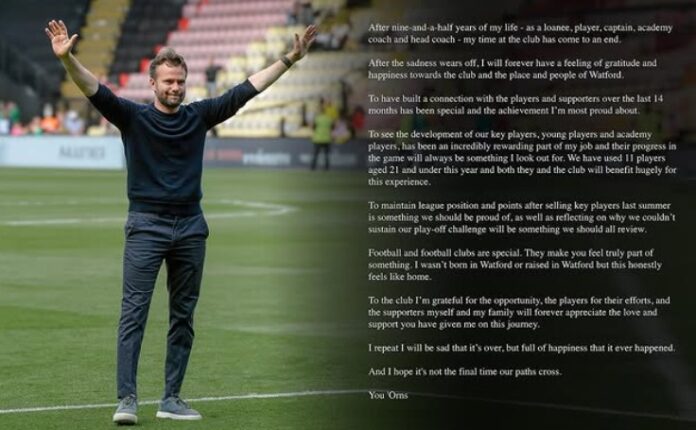 – Vi takker Tom for hans innsats – ikke bare som hovedtrener, men for alt han har bidratt med til Watford både som spiller og leder, sier sportsdirektør Gian Luca Nani i en uttalelse.