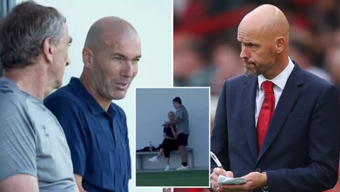 Frankrikes største fotballstjerne og en av verdens beste managere Zinedine Zidane har blitt oppdaget på Real Betis treningfelt samtidig som Erik ten Hag kjemper for å beholde manager-jobben i Manchester United.