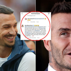 -Om Sverige vinner skal jeg personlig ta deg med på IKEA og kjøpe alt det du trenger til den nye herregården din i Los Angeles, men når England vinner vil jeg du skal komme og se England-kamp på Wembley iført England-drakt og nyte fish and chips i pausen.